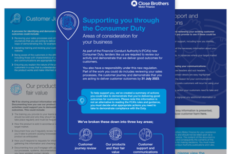 This information is provided by Close Brothers Motor Finance for your assistance and for general information purposes only and should not be relied upon as a substitute for legal or other professional advice. The content of this document is not a substitute for the rules themselves and consequently the contents of this document must not be used as the basis for making decisions. You must make your own assessment of the Financial Conduct Authority publications and rules.